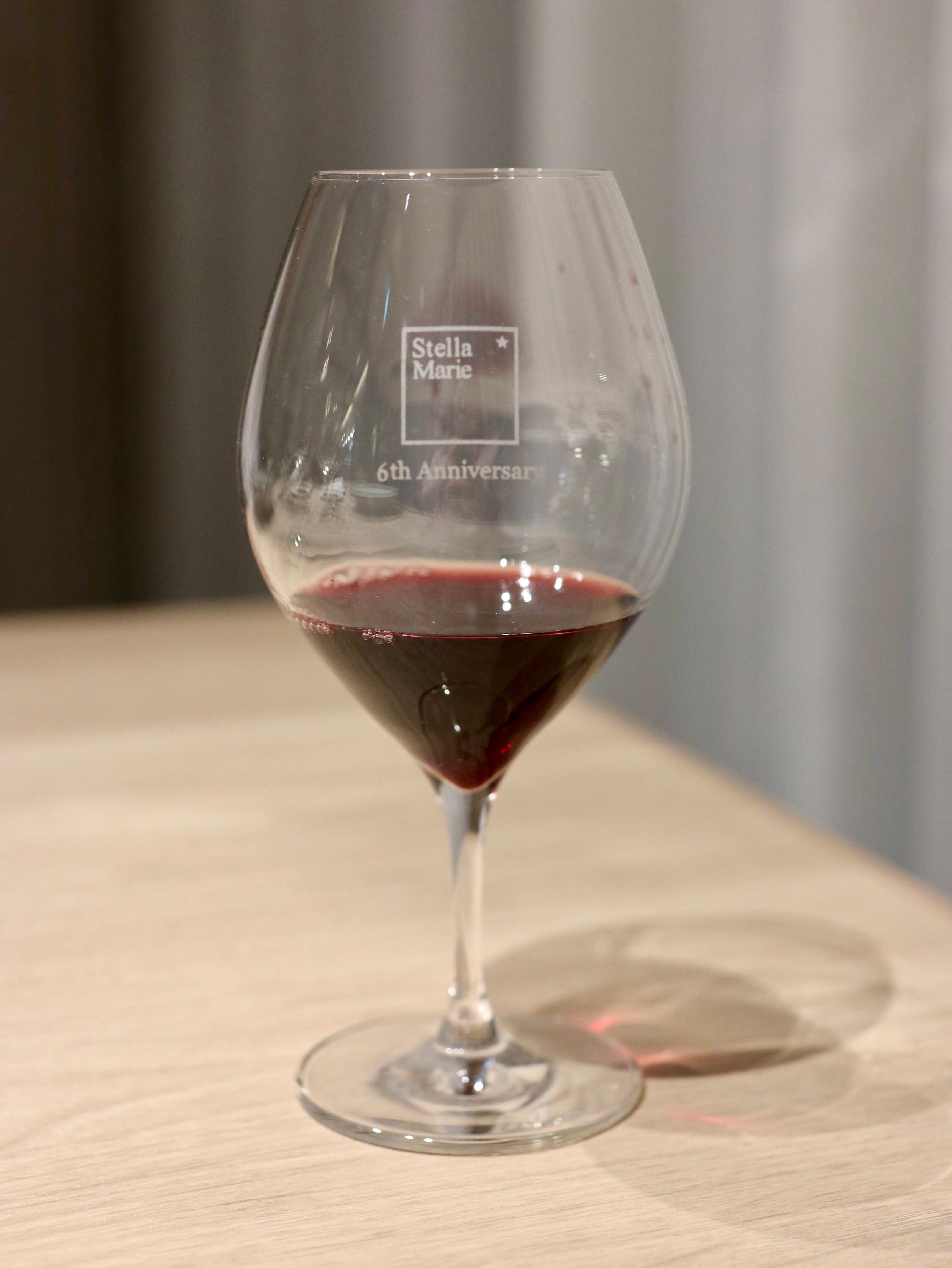 濃い薔薇色。カシス、黒こしょう、ハーブの香り。